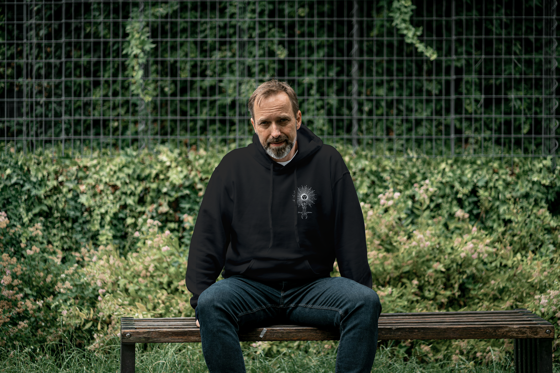 - Premium hoodie with detailed esoteric artwork
